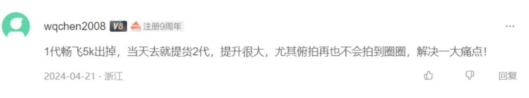 举个例子,大疆的AVATA系列无人机,在一代的时候,在俯拍(相机向下倾斜)时,视频画面里会拍到螺旋桨护圈的边缘,破坏画面美感,妥妥的“视觉污染”。Avata 2代解决了这问题,消费者直呼画面“终于干净了”!