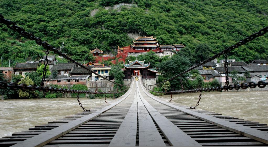 泸定桥上游不远处,于1951年5月底建成的川藏公路大渡河悬索桥是川藏公路上的第一座钢索悬桥,它的建成是解放西藏,加强民族团结,维护祖国统一的历史见证。2019年10月,川藏公路大渡河悬索桥被列为第八批全国重点文物保护单位。