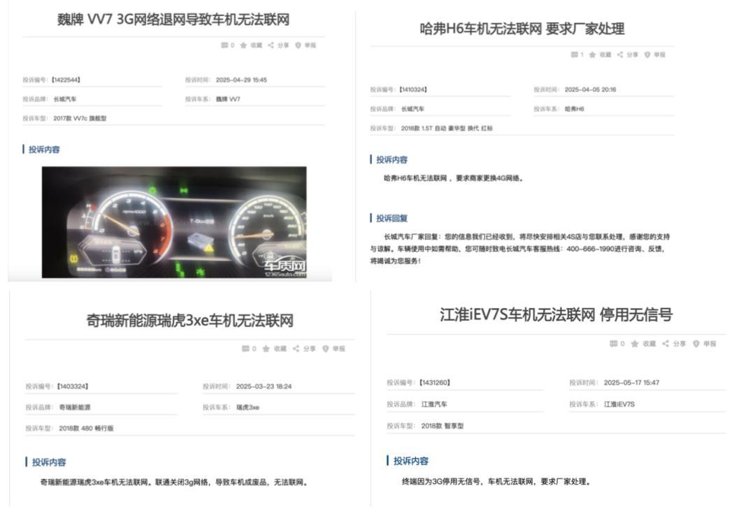 所以也有消费者投诉,3G撤网应由厂家与运营商沟通解决,而不应由车主买单。厂家应免费为受影响的车辆升级或更换相关设备。
