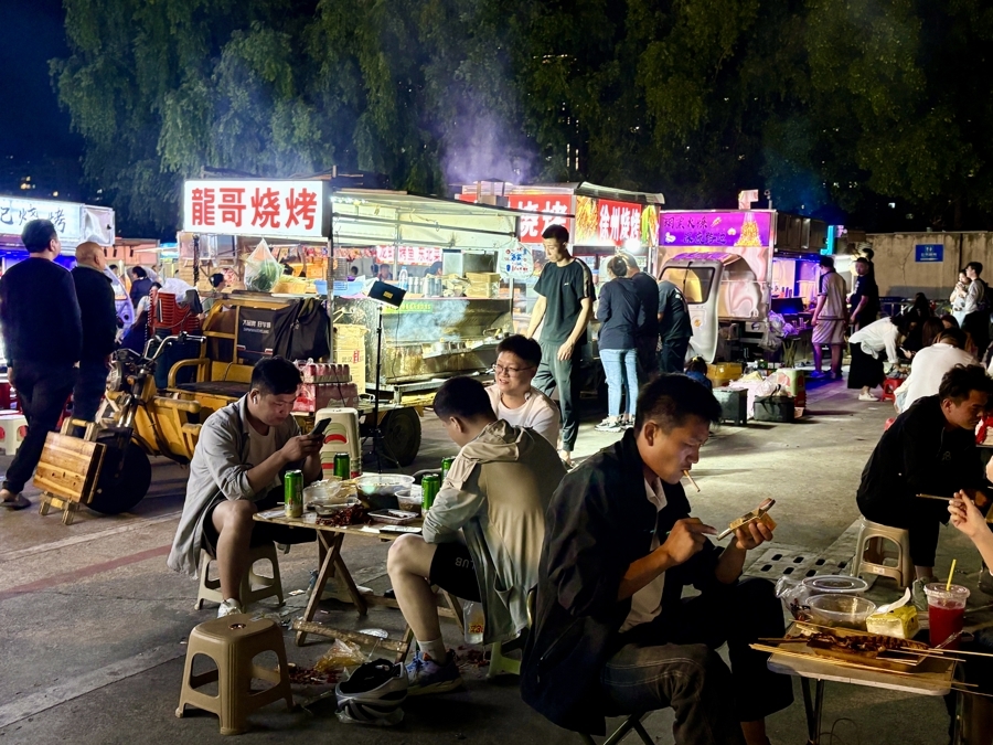 约上三五好友,在露天广场坐着小板凳,吃着小烧烤,配上卤菜和啤酒。似乎只有这样,才算是好好地犒劳自己,把白天的疲惫一扫而空。