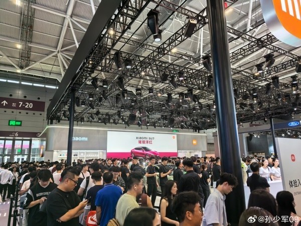 本届车展以“面向科技、面向未来、面向市场”为主题,集中展示车联网、人工智能等前沿科技在汽车产业的应用。小米汽车全家族产品亮相6号馆06展位,其中YU7无疑成为全场焦点。该车型凭借独特设计和卓越性能,引发了现场观众的浓厚兴趣。小米展台前,排队等待参观YU7的观众络绎不绝,展台内人头攒动,气氛热烈。