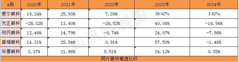 而同一时段,即2022年11月7日至2025年5月30日,爱尔眼科、光正眼科、普瑞眼科、华厦眼科、何氏眼科整体的股价涨跌幅分别录得:-40.67%、-46.11%、-28.81%、-59.35%、-25.30%。
