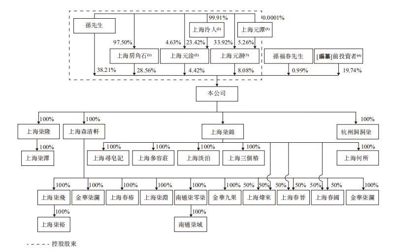 可以看到,孙先生直接(38.21%)及透过上海房角石(28.56%)、上海元洄(8.08%)以及上海元淦(4.42%)间接持有公司已发行股本总额约79.27%的权益。