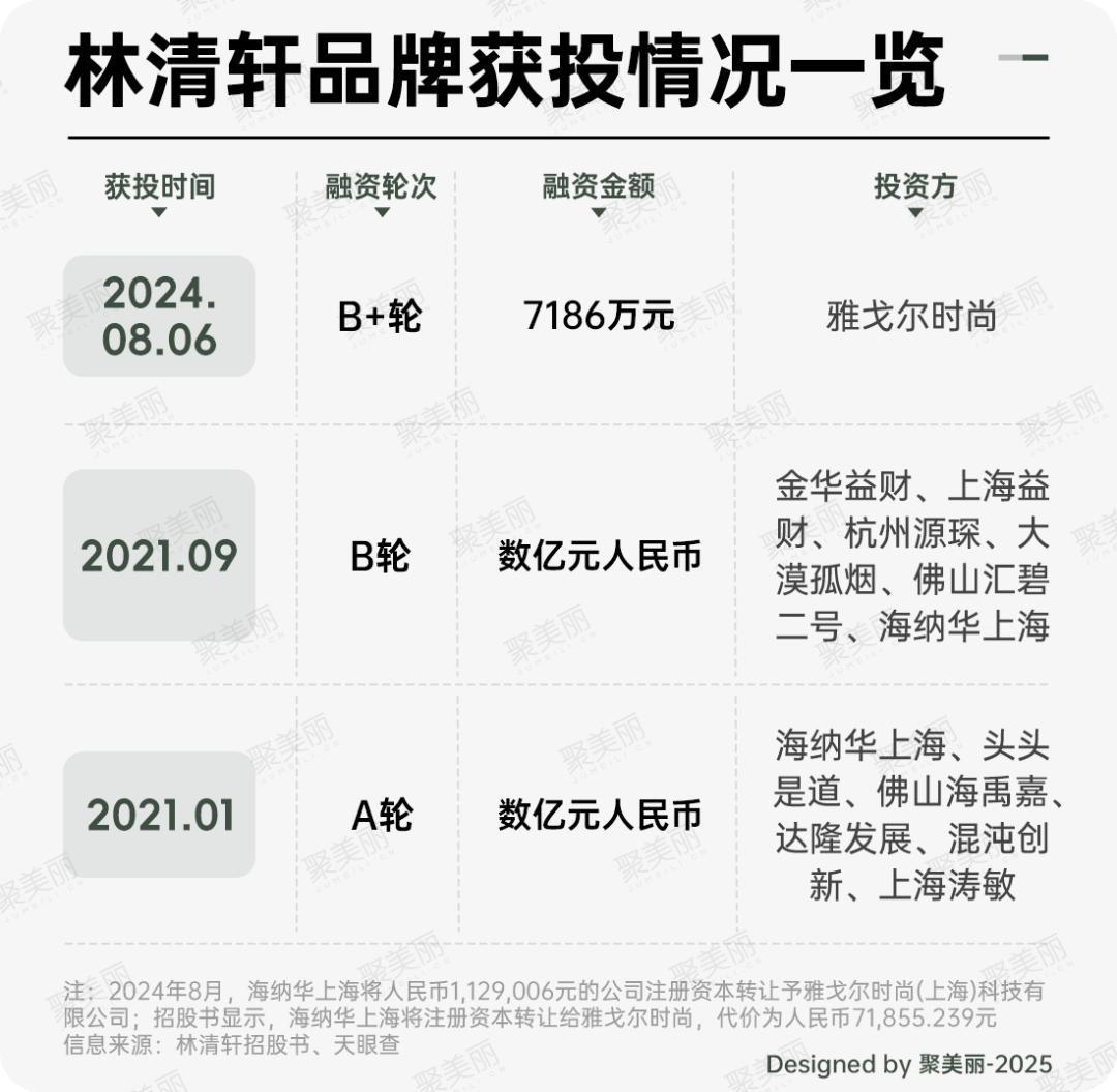 值得注意的是,囿于疫情因素,林清轩曾经历了一段“至暗时期”,也是在这一时期,林清轩获得了资本的投资,招股书披露,林清轩共获三轮融资,投资方有知名房企碧桂园(佛山汇碧二号)、吴晓波(头头是道基金)、雅戈尔时尚等。