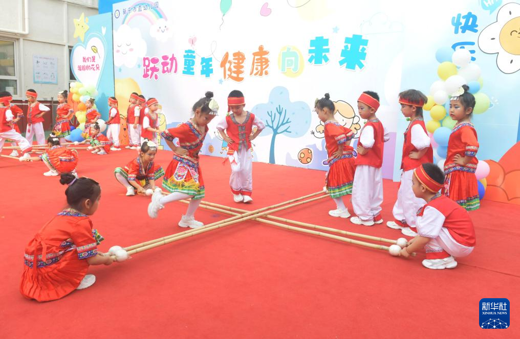 5月30日,河北省石家庄新乐市市直幼儿园的小朋友在表演节目。