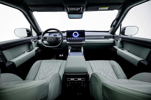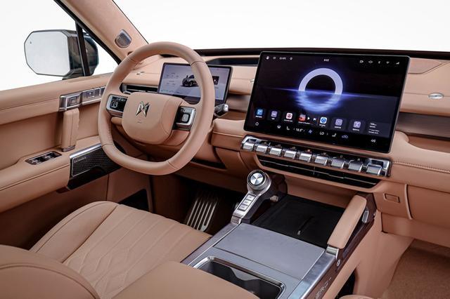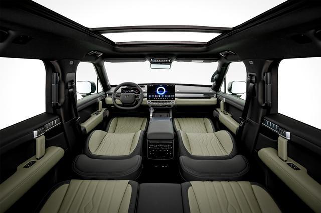 步入猛士M817的座舱,仿佛进入了一个未来感十足的机甲世界。横平竖直、中轴对称的设计,搭配金属质感材质,塑造出硬朗而不失豪华的机甲风格。内饰91.2%的软包包覆面积,特别是人体与座椅接触面大面积选用的Nappa真皮,细腻柔软,触感极佳。顶棚及后备厢采用的高档绒质面料,更是将豪华感提升到了新的高度。
