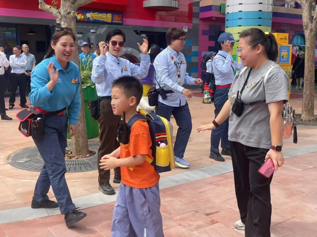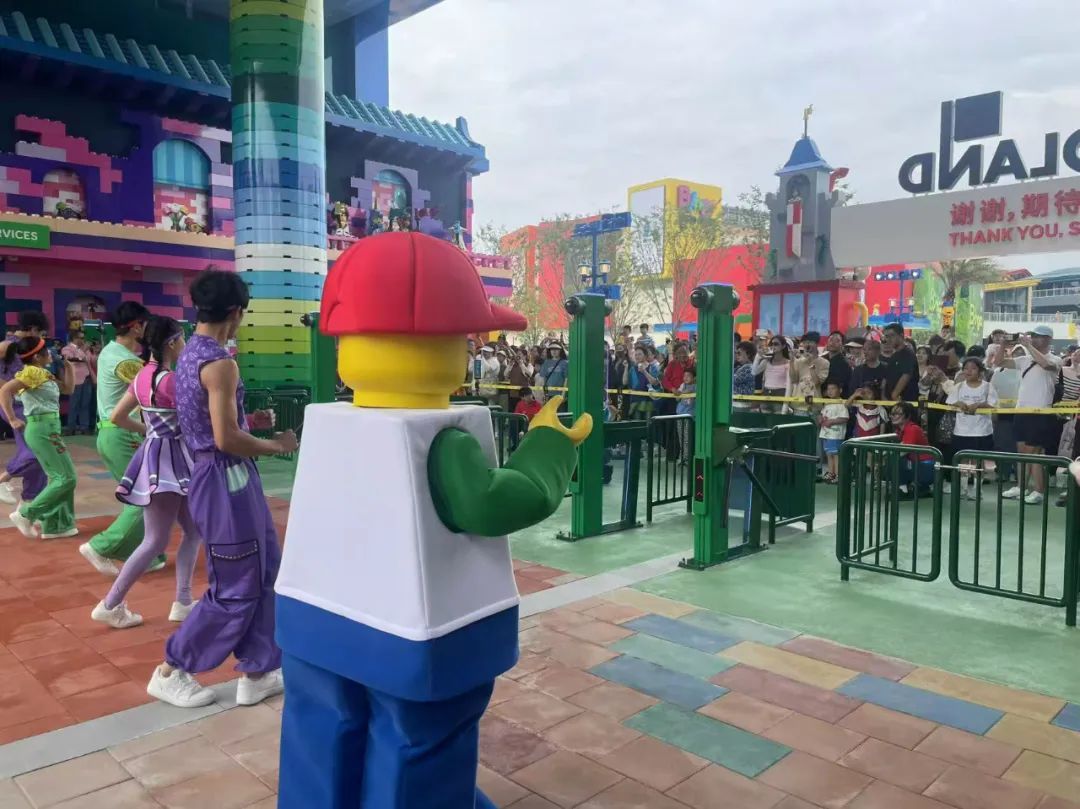 “小朋友们,你们准备好开启乐高之旅了吗?”“准备好了!”伴随着欢快的音乐,歌舞演员化身乐高小人仔带领着乐高人偶麦克和艾米载歌载舞欢迎着首批游客的到来,在门外等候多时的游客与他们欢快地地互动着,瞬间点燃了现场的激情!