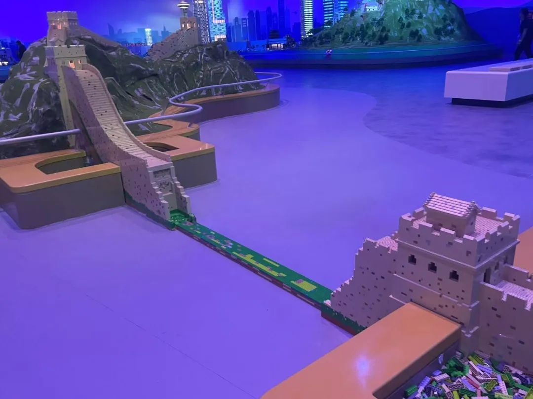 在室内迷你天地里还暗藏惊喜,在这里小朋友们能化身小小搭建师,参与“修补长城”,拼搭“大瀑布”......原来,为了满足游客们的跃跃欲试,园方在这里设置多个拼搭点位。