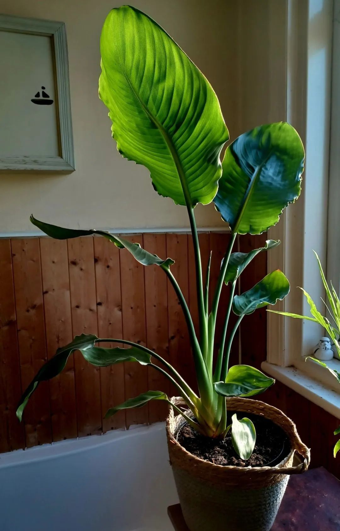 在市面上最流行的就是两种鹤望兰,其中一种就是植株高大的尼古拉鹤望兰(大鹤望兰,Strelitzia nicolai ),它的植株高大,可以长成树的形态,如果在自然界,它甚至可以长到三五米高,它对光照需求特别大,很多商家宣称它特别耐阴,但长期养在遮阴处,它根本是长不了多久的,状态会越来越差。
