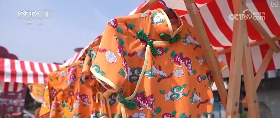 在浙江海宁,端午节期间,裁娘们现场制作虎衣、虎帽,亲手为孩子们穿戴上。虎衣上精美的图案,寓意着百邪不侵、健康成长。