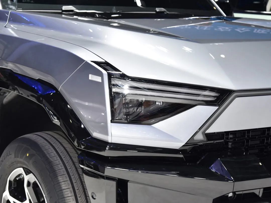 再来看看外观,猛士M817与猛士917的整体风格相似,延续机甲外观设计,车身运用较多的棱角化线条,车头配备梯形的LED灯带以及可发光的猛士LOGO,配合两侧的止戈为武2.0大灯组,展现出满满的科技感。同时,猛士M817提供越野风格和城市风格两种外观,其中越野版车型配备分体式越野保险杠,该保险杠与副车架直接连接,预计该车接近角也将比城市版车型更大。相比之下,猛士M817城市版前保险杠造型相对传统,并使用车身同色配色。猛士科技表示,猛士M817可选6款车身配色,分别为玉龙银、格宗黑、昆仑白、秦岭绿、鸣沙黄和茶卡蓝。