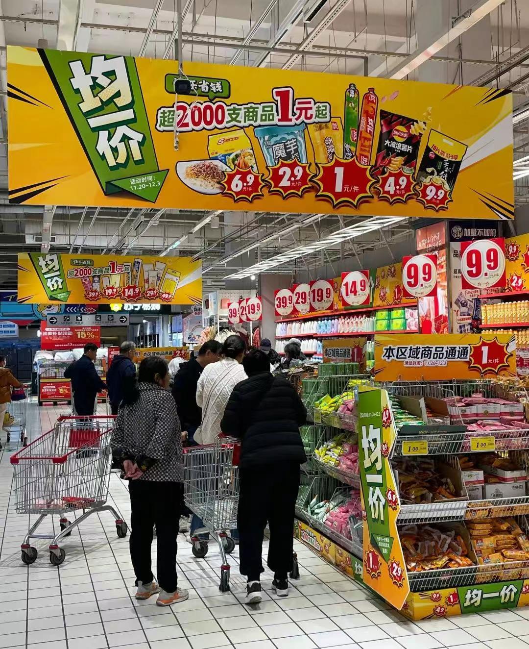 现在的大润发Super,看起来像奥乐齐+永旺超市+沃尔玛的结合体。既有奥乐齐9.9元洗发水、2元的卫生护垫,也有永旺的均一价,还有效仿沃尔玛的“天天平价”专区。