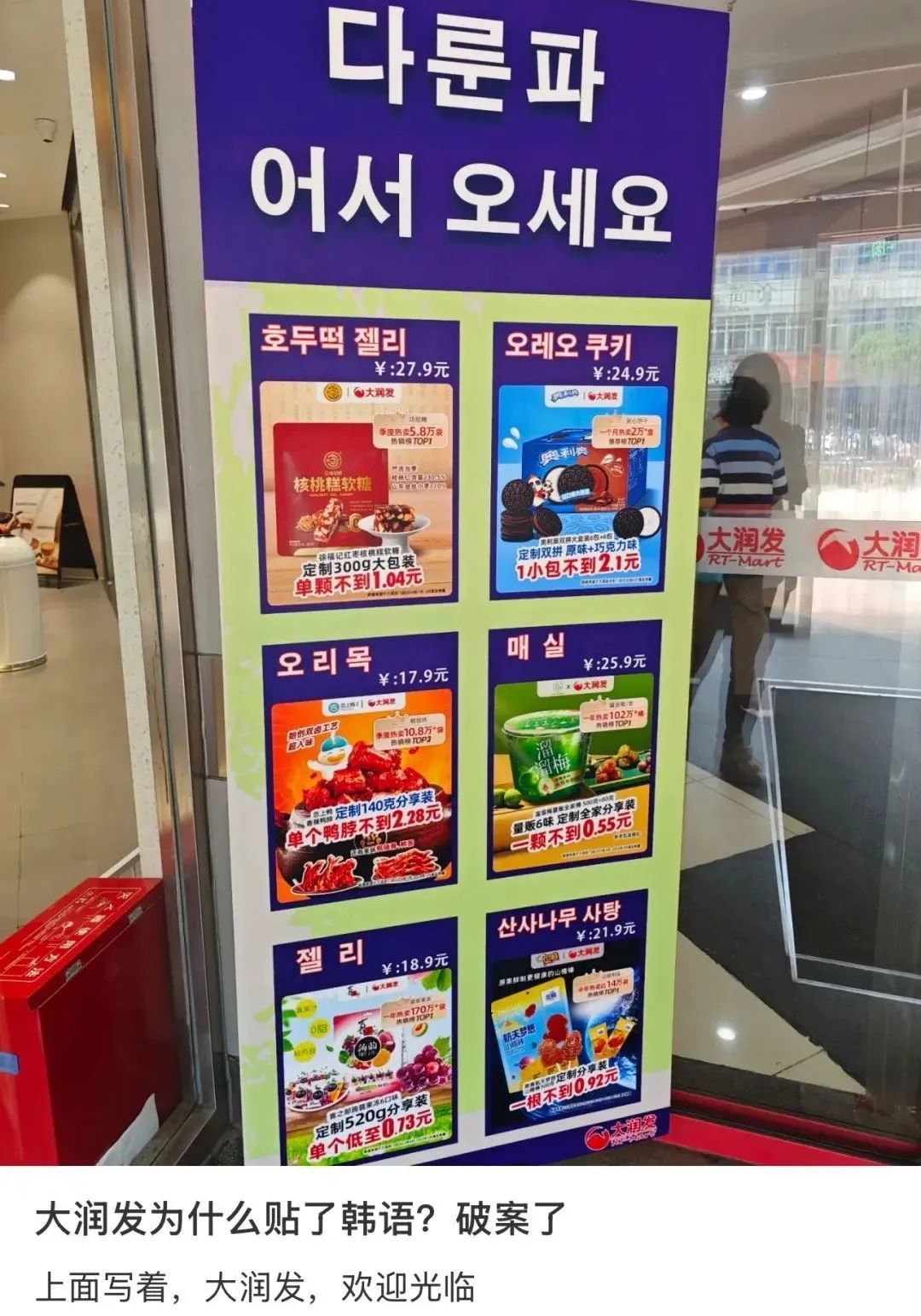 面对突如其来的"韩流",大润发迅速反应,先是增设韩语标识,在超市内各处增加了明显的韩语及英语标识。