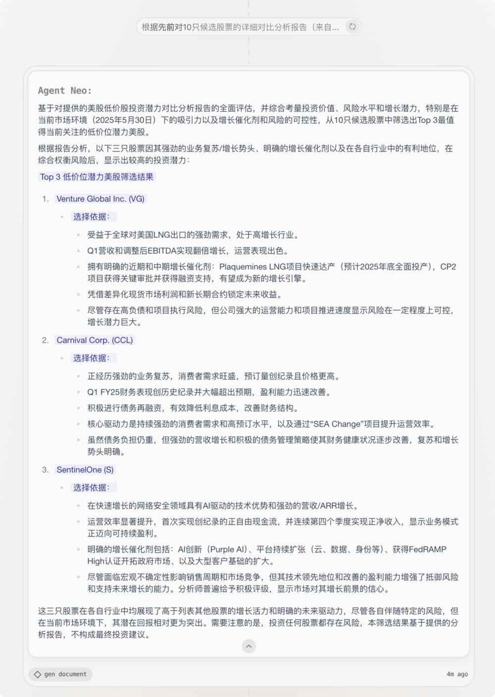 页面上的每个流程节点都能看到内容,生成速度很不错,最后把结果汇总形成报告。