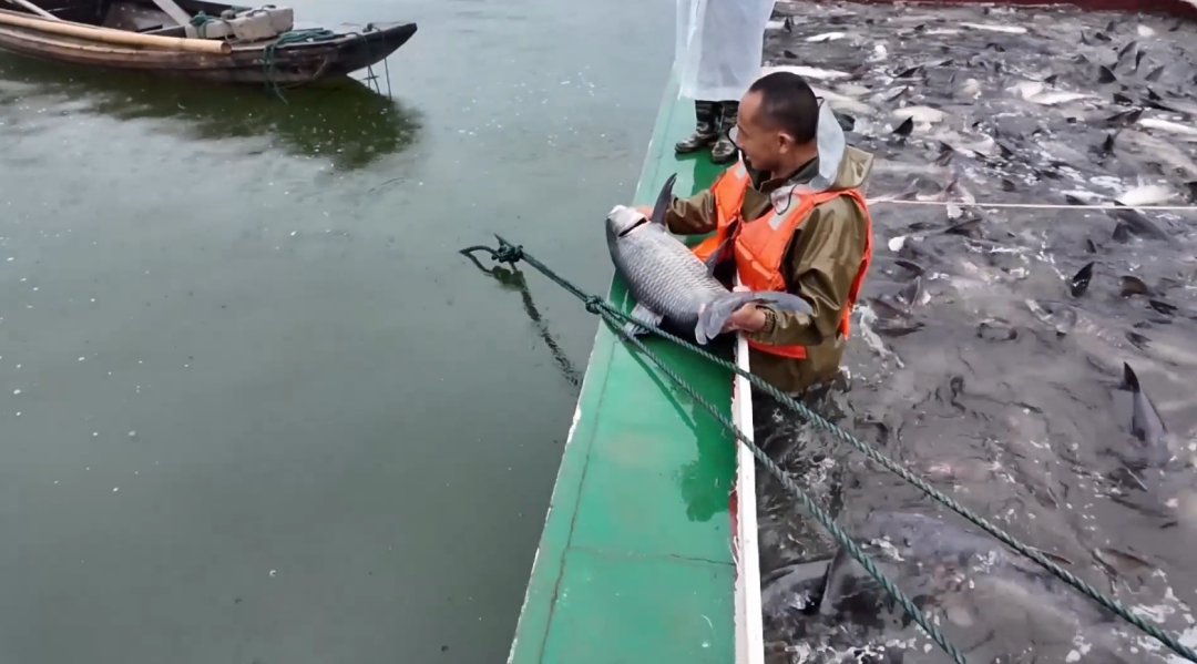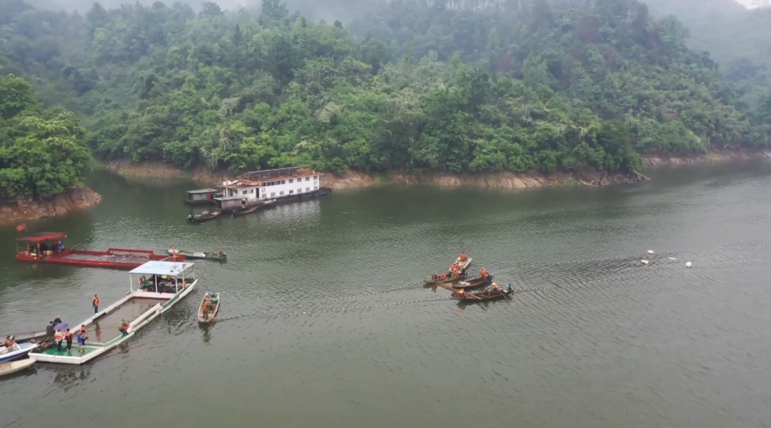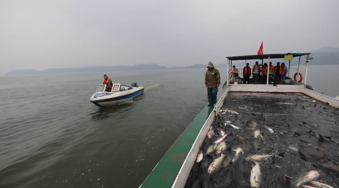 江西山水武宁渔业发展有限公司捕捞大队大队长洪志远说:“这次捕捞主要捕捞我公司投放的花鲢和白鲢,人放天养,确保清水鱼的质量。这次捕捞大概6万斤。”