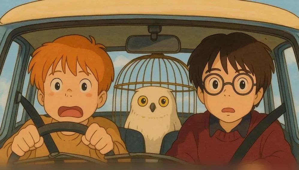 在小绛看来,科技的发展固然需要支持,但作为人而言,我们还有很多必须要坚守的东西。以下就是网友借助人工智能绘画,模仿电影片段或热门图片制作的“宫崎骏”画风的数字图像,说说你在看完这些图像后,有什么感触吧。