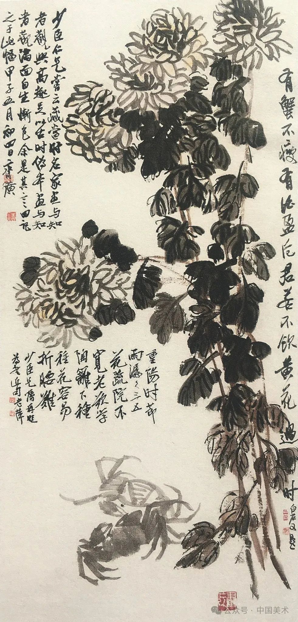 墨菊蟹图 齐白石 立轴 纸本设色 96.5cm×46.2cm 1924年 中国美术馆藏