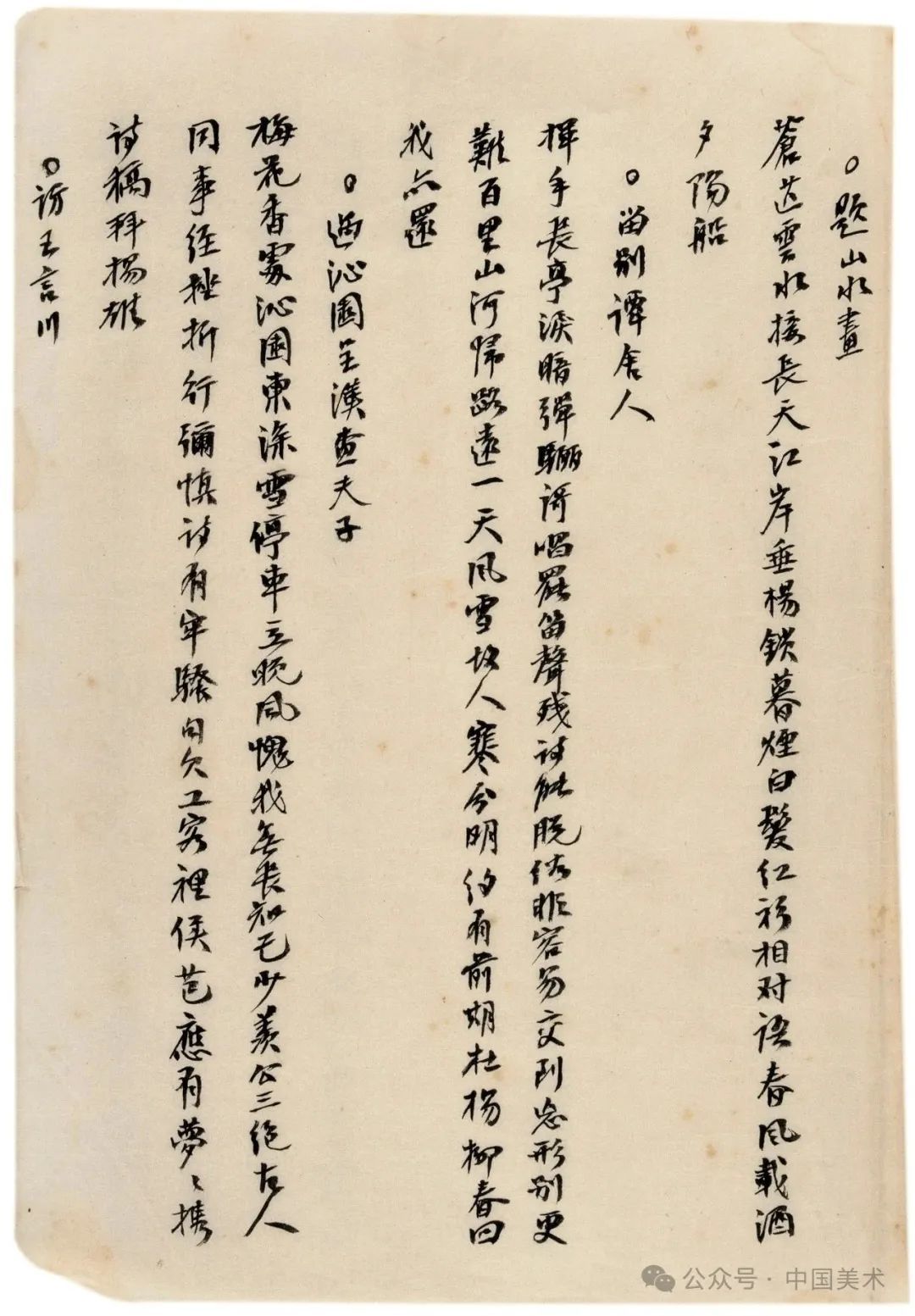 北京画院藏的齐白石诗稿,有早年作,中晚年作;有行书,楷书;有涂改稿,誊清稿。齐白石的诗,自编有《借山吟馆诗草》、《白石诗草二集》,后人编有《白石诗草续集》、《白石诗草补编》、《续补齐白石诗词联语》。又曾先后编为《齐白石作品集·第三集诗》、《齐白石全集·第十卷·诗文》。