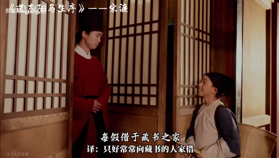 UP主“郝家豁”翻拍的《送东阳马生序》