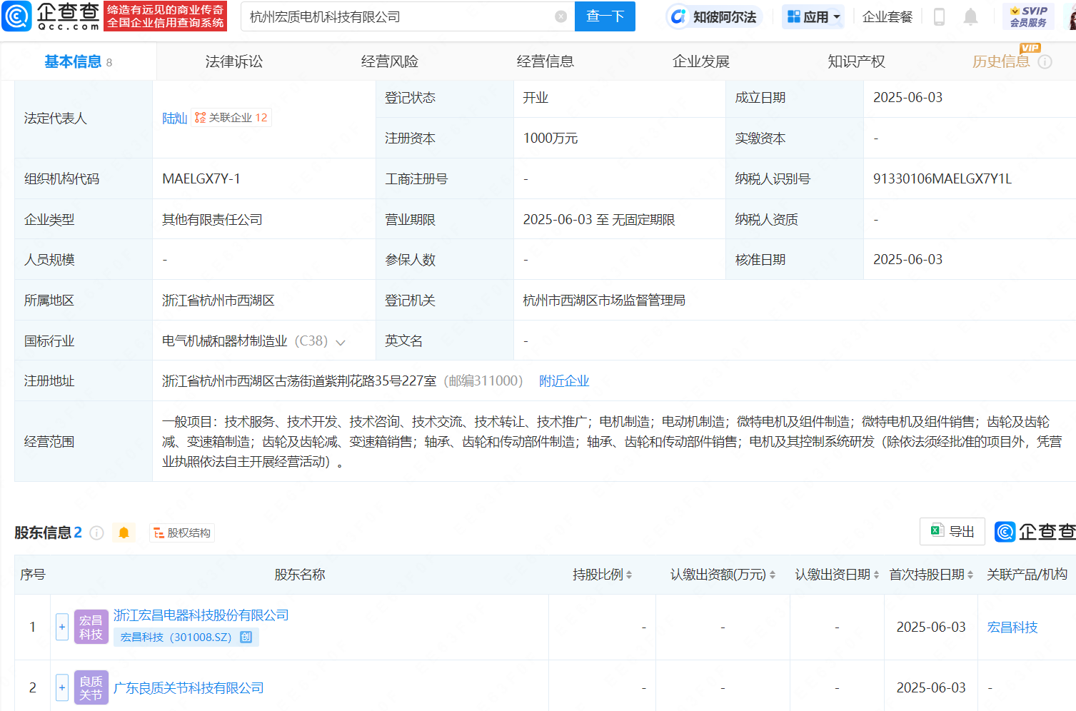 企查查APP显示,近日,杭州宏质电机科技有限公司成立,法定代表人为陆灿,注册资本为1000万元,经营范围包含:电机制造;微特电机及组件制造;齿轮及齿轮减、变速箱制造;电机及其控制系统研发等。企查查股权穿透显示,该企业由宏昌科技(301008)等共同持股。