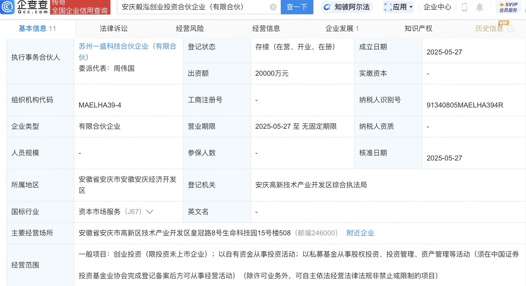 企查查APP显示,近日,安庆毅泓创业投资合伙企业(有限合伙)成立,出资额2亿元,经营范围包含:创业投资(限投资未上市企业);以自有资金从事投资活动;以私募基金从事股权投资、投资管理、资产管理等活动。企查查股权穿透显示,该企业由富淼科技(688350)、天禄科技(301045)等共同出资。