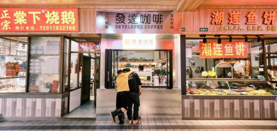 去年,咖门报道的江门咖啡品牌“發逹咖啡”,就在当地的浮石菜市场开设了门店。品牌负责人提到,周边买菜的大爷大妈成了稳定客流。