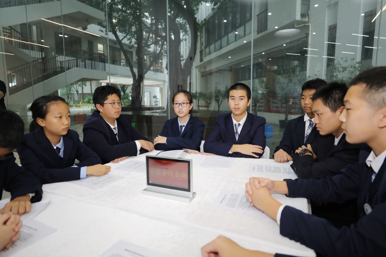 “今天人大常委会全体会议的议程,主要是听取《建设骑行友好城市实施办法(草案)》的汇报……”福田区外国语学校学生化身“市人大常委会主任”主持会议,“市人大常委会秘书长”向“市人大常委会会议”作报告。