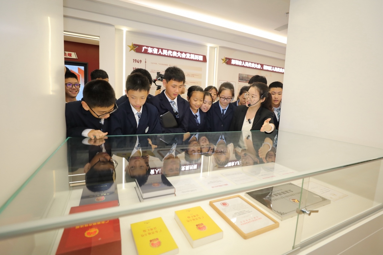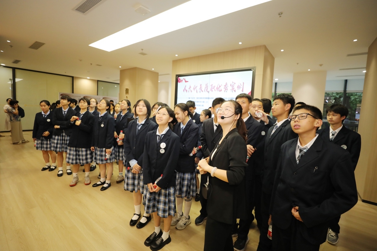 “模拟人大常委会会议”活动结束后,市、区人大代表以及福田区外国语学校师生代表来到福田区人大代表之家,这里也是人民代表大会制度的宣讲基地,大家在这里体验了一趟“全过程人民民主学习之旅”。