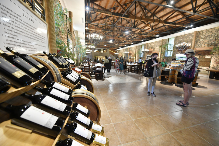进入夏季,数十万亩酿酒葡萄园把贺兰山东麓的戈壁荒滩变为绿色海洋。在银川市志辉源石酒庄,草木苍翠欲滴,掩映着石头建成的中式品酒大厅。游人穿梭其中,或选购品鉴、或驻足拍照,如漫步中式园林。