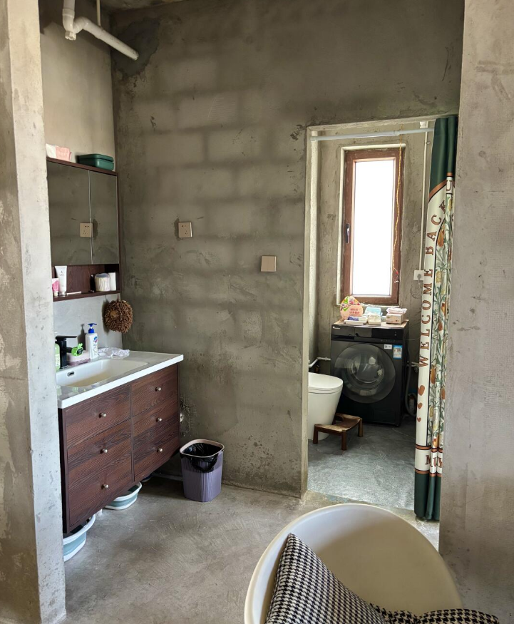 两个卫生间都用起来了,一个如厕,一个淋浴,硬装简单但完全够用,不漏水不渗水。