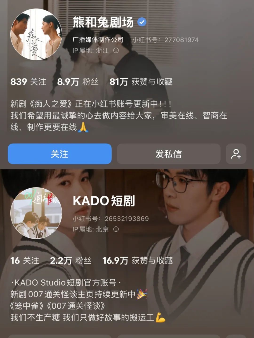 短剧厂牌在小红书上发行短剧,相比起其他平台有一个最大的好处,就是能够帮助厂牌在观众中建立知名度,打出品牌效应。这得益于小红书“追求品质”的内容生态和“活人感”的社区氛围,能让内容创作者得到更多的尊重与认可。《痴人之爱》播出十天后,熊和兔剧场在站内的搜索环比提升了2724.50%,剧场账号涨粉近8w。