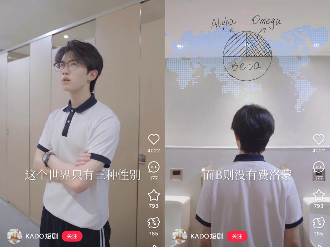 此外还有KADO短剧,主攻双男主情感赛道,在春节档和520档期分别上线了《笼中雀》和《007通关怪谈》,故事设定都颇有新意。《笼中雀》讲述了昔日男友变今日“小妈”的虐恋故事,让很多女性观众埋头嗑上了CP。