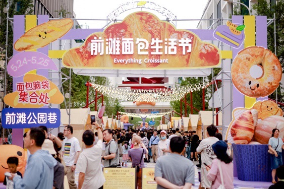 5月24日至25日,“前滩面包生活节”热力接档,联动人气IP“面包漫步”,集结70余家面包、甜品与饮品商户,将世界面包风味汇聚前滩,同期携手上海纽约大学举办毕业集市,融合歌舞演出、非遗巡游与游戏互动,在碳水香气与青春活力中,持续释放城市消费的多元潜力。