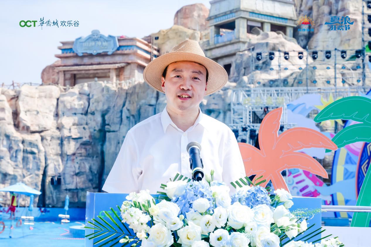 西湖区政府副区长熊珊阳上台致辞,她表示玛雅海滩水公园是华侨城集团入驻江西打造的首个文旅综合体项目,区委区政府将携手南昌华侨城玛雅海滩水公园,诚邀广大市民以水为媒,共游大美南昌的绿水青山,共赏亮丽西湖的繁华似锦。