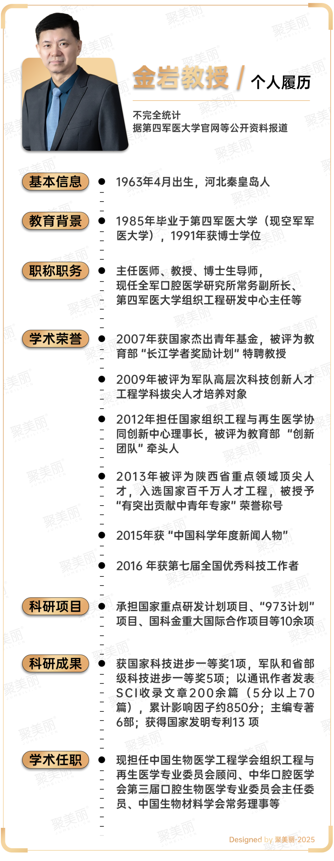 此外,值得一提的是,在此次的专利争议中涉及的关键人物金岩教授,是国内再生医学领域的带头人物:现担任中国生物医学工程学会组织工程与再生医学专业委员会顾问、中国生物材料学会常务理事等职务。同时,金岩教授还是科技部“973计划”与重点项目首席科学家、长江学者特聘教授、国家杰出青年基金获得者、空军军医大学组织工程研发中心创始人。