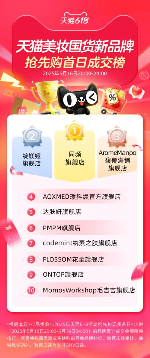 在天猫618美妆国货新品牌抢先购首日成交榜中,绽媄娅旗舰店位居第二名。