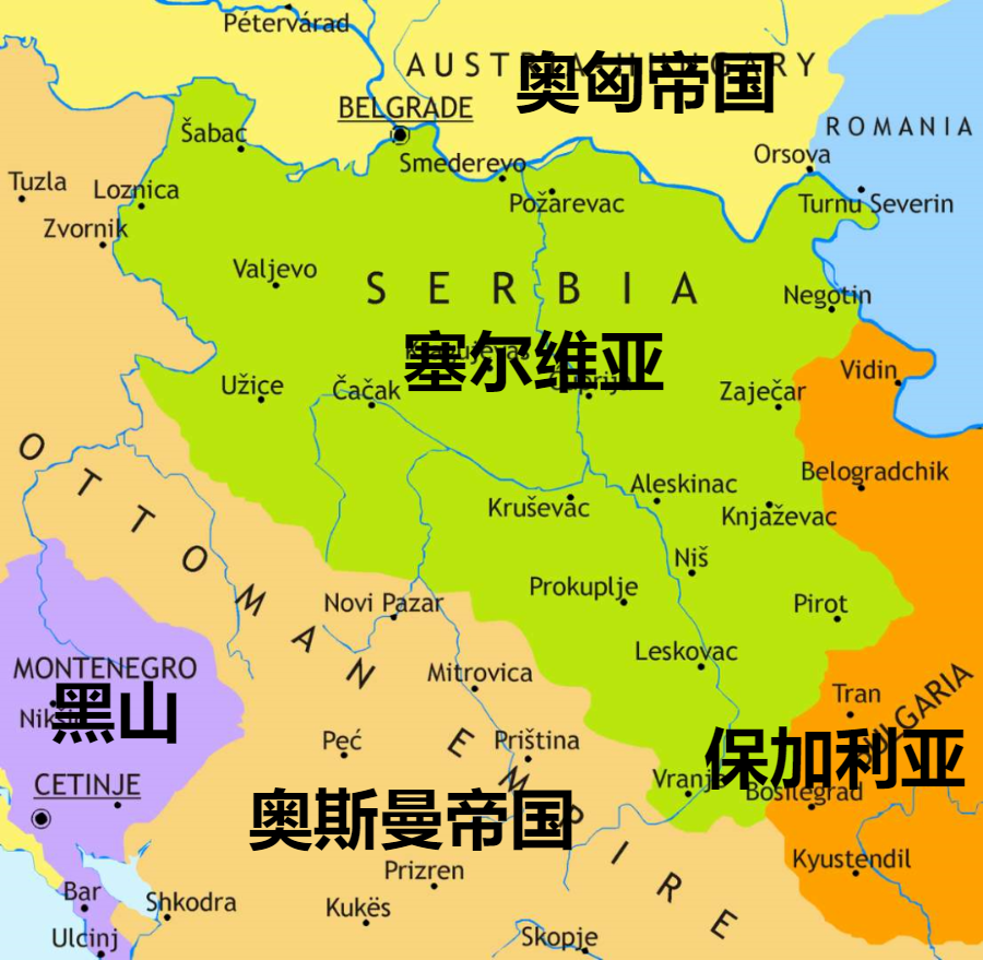 1878年,塞尔维亚在斯拉夫民族“老大哥”俄国的帮助下取得了独立。此时塞尔维亚的国土只有今天的一半,且同黑山并不接壤。