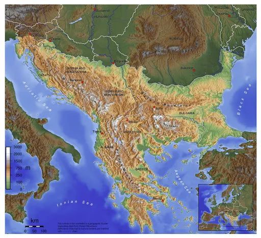 ▲巴尔干半岛的地形