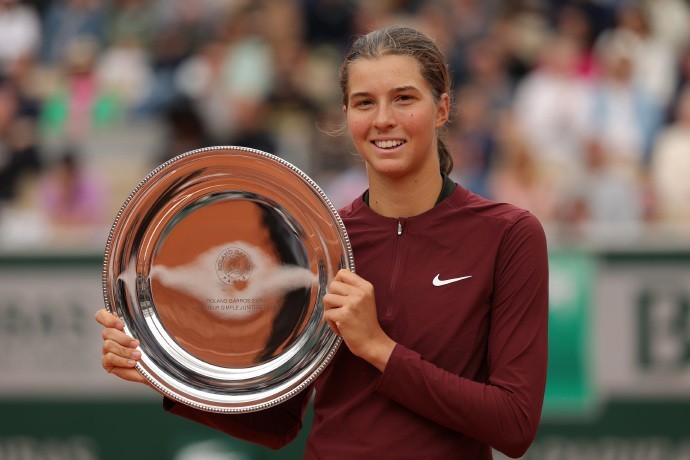 6月7日,法网青少年组女单决赛,17岁的塔格尔以2-0(6-2、6-0)横扫16岁的克卢格曼,成功捧杯。