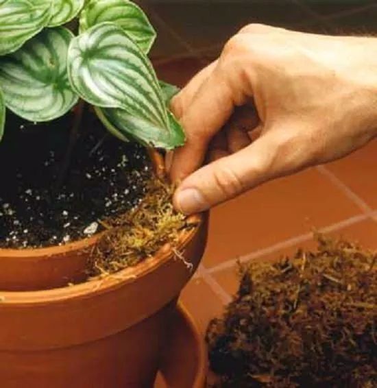 在盆栽植物的外面,还可以套上一个更大的花盆,两个花盆之间要有适当的间距,之后就可以在大的花盆和小花盆中间,铺上一些水苔,铺满水苔之后,就可以将水苔浇水湿润,这样可以达到持续的保持湿度的效果,水苔保持湿润但不要积水,盆土里面也就不会长期潮湿,也能够防止植物的根茎腐烂。