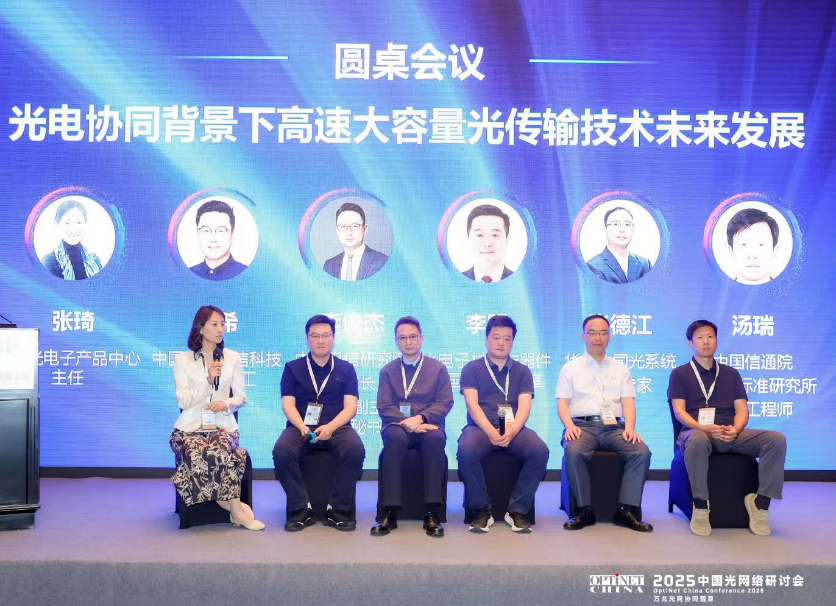 本届大会以“光电协同背景下高速大容量光传输技术未来发展”为核心议题,组织了深度圆桌讨论。与会报告人围绕超高速光传输技术演进与产业趋势以及新型封装/集成/材料技术路线和发展方向等多个关键维度,深入分享了前沿观点与行业洞察,为高速大容量光传输技术的产业升级与协同创新提供了重要思路,进一步凝聚了行业共识。