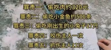 罪责四:咬伤主人一次罪责五:抓伤主人12次…”
