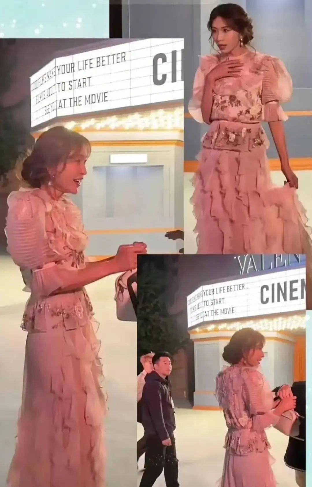 曾经的国民女神林志玲,脸庞依然美丽如初,但她完全不像往日气场全开,而是全程缩着脖子,迈着小碎步。