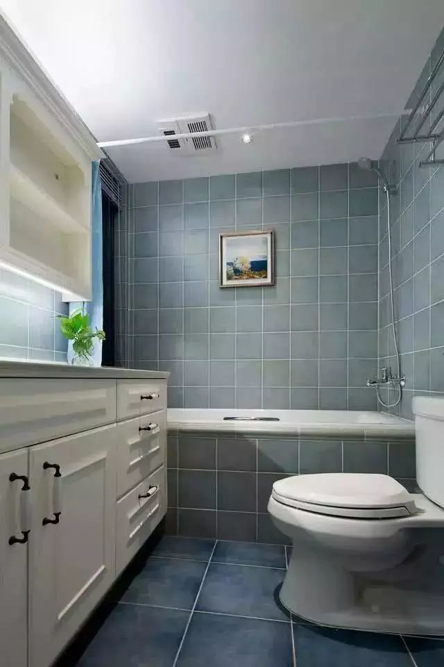 卫生间铺的瓷砖采用蓝色调,搭配白色的家具,尽显清新舒适,卫生间装有花洒和浴缸,可以淋浴也可以泡澡,当工作累了的时候泡泡澡也是很舒服的。