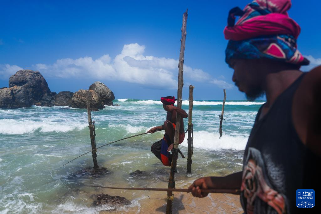 6月5日,渔夫在斯里兰卡南部城市加勒附近海域“高跷钓鱼”。