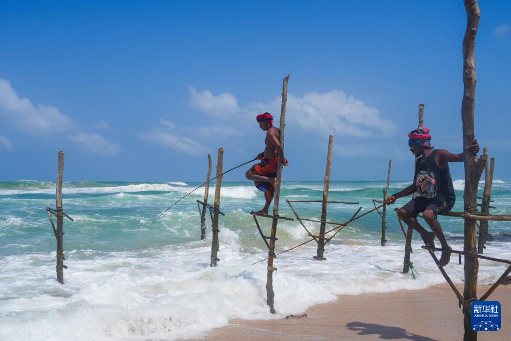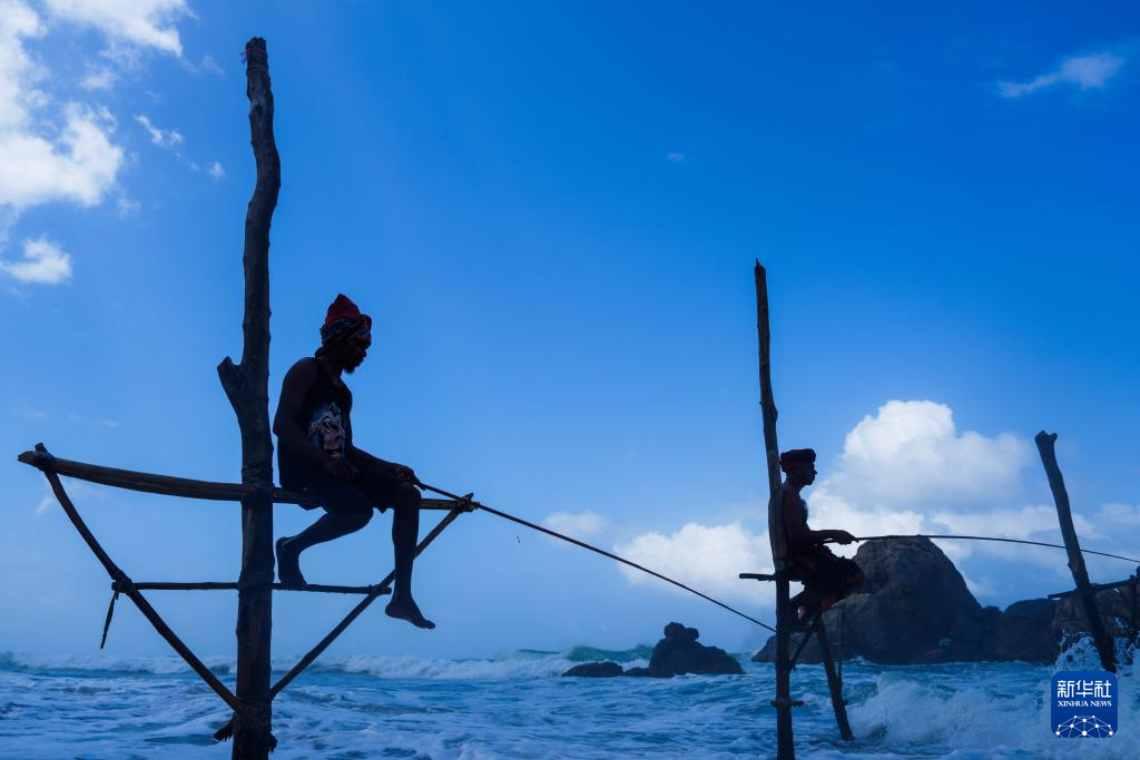 在斯里兰卡西南海岸的浅海区至今仍然保留着一种世界上独一无二的人文景观——“高跷钓鱼”。每到清晨或黄昏,渔夫会涉水爬上木杆,然后端坐其上,手持没有诱饵的渔竿钓鱼,远远望去像是在踩高跷。如今“高跷钓鱼”已成为游客到斯南部城市加勒旅游必看的一道风景。