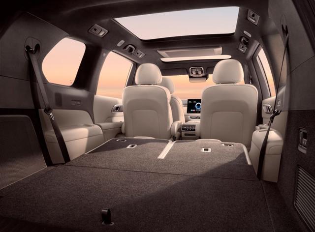 4.3m²纯平地板、1.3m高通道、200mm宽通道、870mm坐垫纵深,这样的尺寸表现,即便是身高1.8米的乘客入座,也能轻松舒展身体,彻底告别传统六座SUV第三排“小板凳”式的局促与尴尬。更令人拍案叫绝的是其独创的“六人七箱”空间魔法:满员状态下,后备箱竟能轻松“吞下”7个20英寸登机箱,全家行李一次搞定!而当第三排座椅优雅放倒,1392L的“巨无霸”货舱瞬间解锁,大到双开门冰箱、露营装备,小到婴儿车、自行车,统统不在话下,搬家级的装载力,让每一次出行都底气十足!