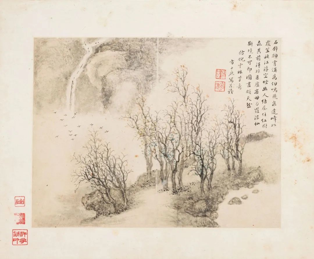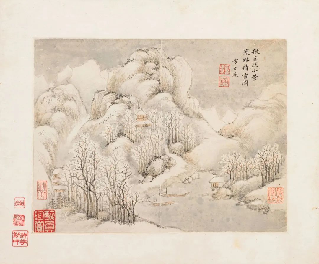仿巨然小景寒林积雪图。方士庶。