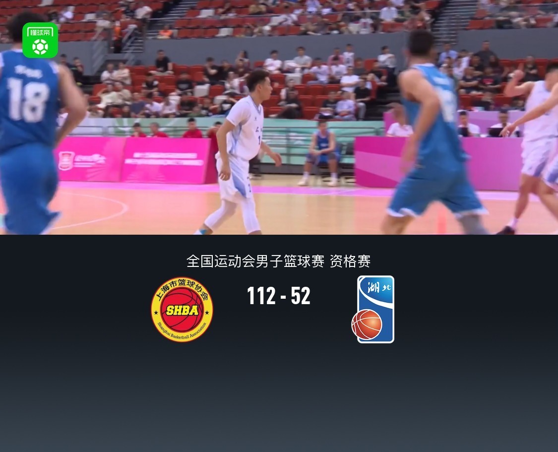 北京时间6月8日全国运动会男子篮球赛资格赛,上海男篮对阵湖北男篮。半场上海男篮68-32湖北男篮,最终上海男篮112-52湖北男篮。