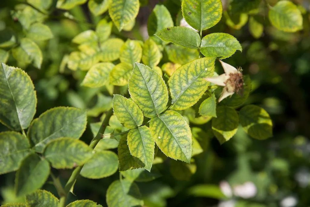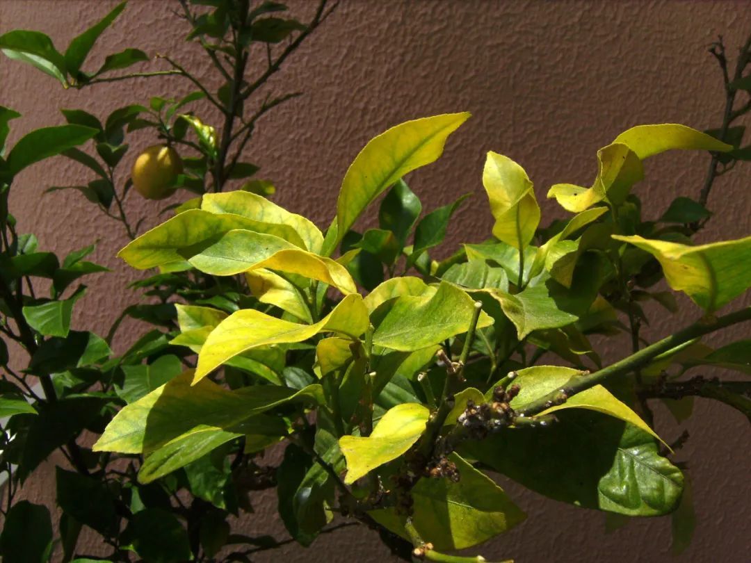 大家也要学会分辨缺铁性黄叶和缺镁性黄叶,缺铁性黄叶是表现在植物枝条上的所有枝叶上,包括老叶和新叶,而缺镁性黄叶则会出现在植株的底部。